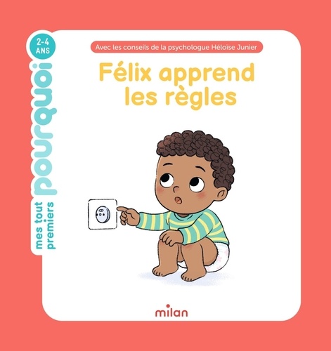 Félix apprend qu'il existe différentes sortes de limites : les règles de la maison, pourquoi il est important de porter une tenue adaptée, les règles de sécurité, ou encore que les règles ne sont pas les mêmes pour tout le monde... Le petit héros est mis en situation pour décrire les limites sous toutes leurs formes et comprendre qu'elles servent à bien grandir ! Un documentaire qui décrit ce comportement typique des 2-4 ans On explique aux 2-4 ans à quoi servent les règles. Ils comprendront qu'elles permettent de bien vivre ensemble à la maison ou à l'extérieur, que ce cadre sécurisant sert à les protéger... afin de les aider à bien grandir ! En collaboration avec Héloïse Junier Une collection dirigée par une docteure en psychologie du développement et formatrice en crèche, de renom. Elle apporte sa connaissance de la petite enfance, pour parler aux tout-petits, avec leurs mots, de sujets qui les concernent vraiment. Avec une double page destinée aux parents, faisant le point sur les dernières données scientifiques, et des conseils.
